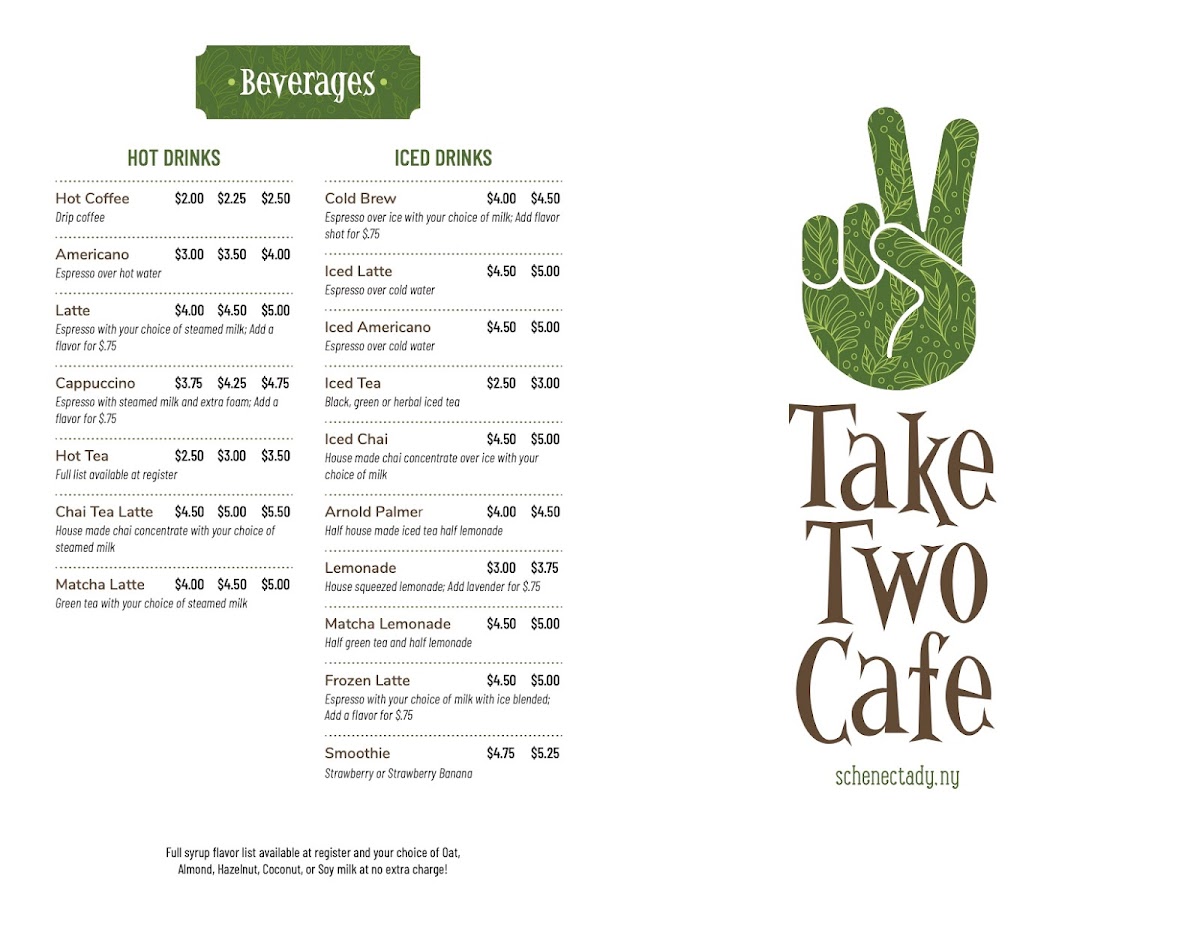 Take Two Cafe Menu